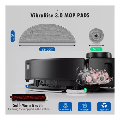 Almohadillas para mopa 3.0: el paño de mopa está hecho de microfibra, tiene 2 módulos de vibración y es lavable y reutilizable a máquina; las almohadillas de los bordes vienen con tornillos y un destornillador para una fácil instalación, 3 tipos de cepillos: los 2 cepillos principales mejoran la eficiencia de succión y reducen los enredos; los 6 cepillos con bordes de goma limpian eficazmente las esquinas y los bordes; el cepillo principal se utiliza para limpiar la almohadilla de la mopa y prepararla para volver a trabajar, 4 Filtros HEPA: el filtro puede filtrar el 99,97% del polvo, el polen, el polvo y otras partículas de tan solo 0,3 m; se puede reutilizar después de limpiarlo y secarlo; se recomienda reemplazarlo cada 2-3 meses