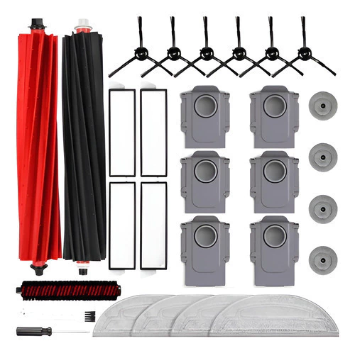 Compatible con: estas piezas de repuesto para el robot aspirador Roborock S8 MaxV Ultra; incluyen 2 cepillos principales, 6 bolsas de polvo, 4 almohadillas de limpieza sónicas dobles, 4 almohadillas de mopa de borde, 4 filtros, 6 cepillos laterales, 1 cepillo de limpieza.